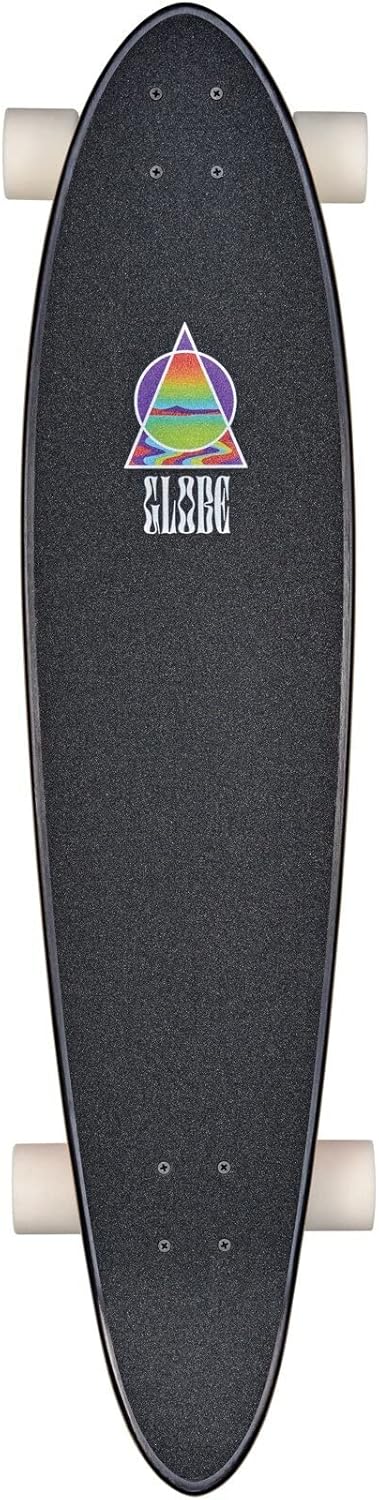 Cruise with style on the Globe Pinner Classic Longboard Complete in Yer Playin'. This classic pintail longboard features a kicktail and is crafted from Resin-8 hard rock maple for durability and strength. With a mellow concave, the board offers smooth carving and control. The 180mm Slant reverse kingpin trucks provide responsive turns, and the 65mm 78a wheels offer the perfect balance of grip and slide. Finished with vibrant neon artwork and prism foil details, plus black grip tape with custom art by Emily Lynn Perelman, the Pinner Classic is as much a work of art as it is a high-performance longboard.Features:Deck Size: 40" long with a classic pintail shape and Resin-8 hard rock maple construction Concave: Mellow concave for smooth carving and comfortable foot placement Trucks: 180mm Slant reverse kingpin trucks for responsive turning and control Wheels: 65mm 78a wheels for a great blend of grip and slide Grip Tape: Black grip tape with unique artwork by Emily Lynn Perelman Design: Neon artwork and prism foil details for eye-catching style Classic pintail shape for smooth carving and cruisingResin-8 hard rock maple deck for long-lasting durability180mm reverse kingpin trucks for excellent turning precision65mm 78a wheels provide the perfect balance of grip and slideVibrant artwork with prism foil details and custom grip tape design